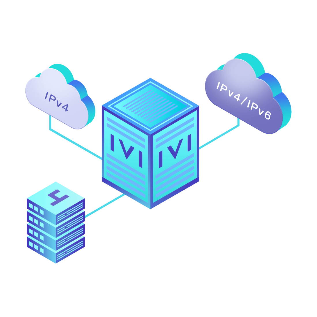對正在進行IPv6整體升級規劃的運營商,應用IPv6升級方案2.5,通過IVI無狀態翻譯技術和純IPv6接入網絡,為雙??蛻舳撕碗p棧服務器提供連通服務。